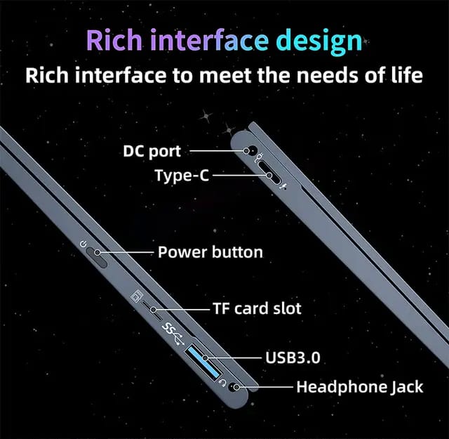 I/O port : 1X USB 3.0 Port ,1X USB 2.0 Port 1 mini hdmi, 1 dc port, 1 earphone port 3.5mm, 1 micro sd