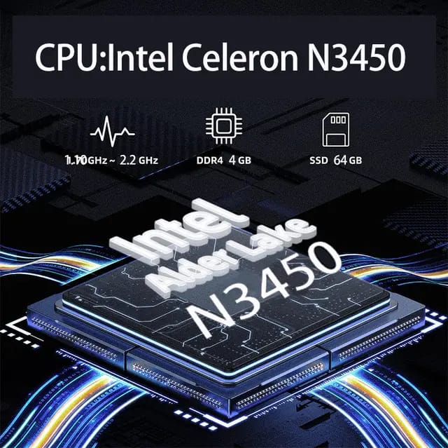 CPU : Intel Celeron N3450 4Cores 1.10 GHz-2.2Ghz